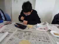 午後からのプログラムは「てん刻」。卒業制作の作品の片隅に捺印する自分のはんこを作ります。石をけずって作る活動に子どもたちは真剣な表情で参加していました。