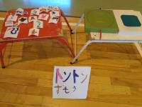 お客さんは1年1組のお友達です。ちょっと寒い体育館でしたが、遊んでいる内に体も心もぽかぽかに!