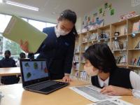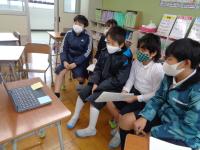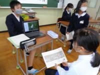 6年生は、英語の時間に、内灘町で見られる生き物について調べてきました。生き物の名前、食べ物、住んでいる所などを調べたあとは、英語での言い方を学習しました。今日は、調べたことを3年生に伝える時間でした。一人一台のchromebookを手にしています。英語で伝えるのですから、3年生にとっては、何を言っているのか分からないかもしれません。そこで、分かりやすく伝えるために、chromebookで写真やイラストを見せながら英語で調べたことを伝えるようにしたそうです。