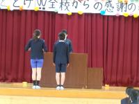 体育館に全校集まってのマジックショー!! 次から次へと繰り広げられる「不思議!」「びっくり!!」に子供たちも目を丸くしたり歓声をあげたり・・・
