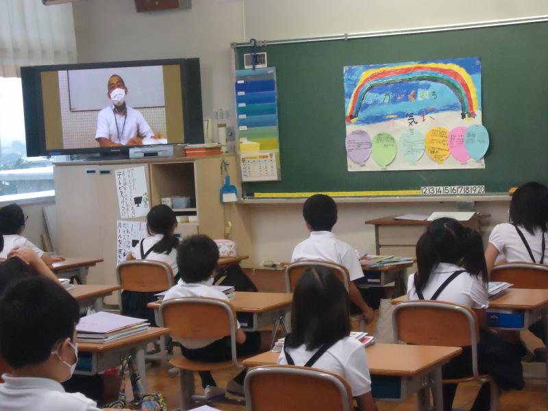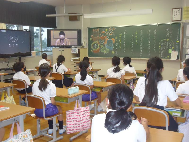教室では、子どもたちが真剣にテレビ放送を見ている姿が見られました。
