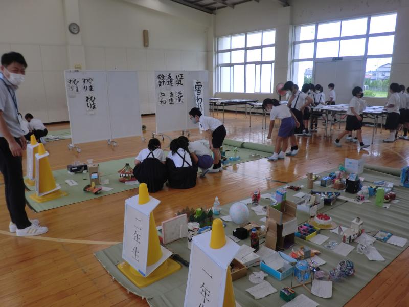 2年1組の子どもたちが、先日から一生懸命準備してきたおもちゃランド!生活科の時間に、段ボールやペットボトル等を工夫して使いながらグループごとに楽しいおもちゃを作成していました。中には、おもちゃではないものを作っていた人もいましたが、どうやらそれは、ランドに遊びに来てくれた人へのプレゼントのようでした。