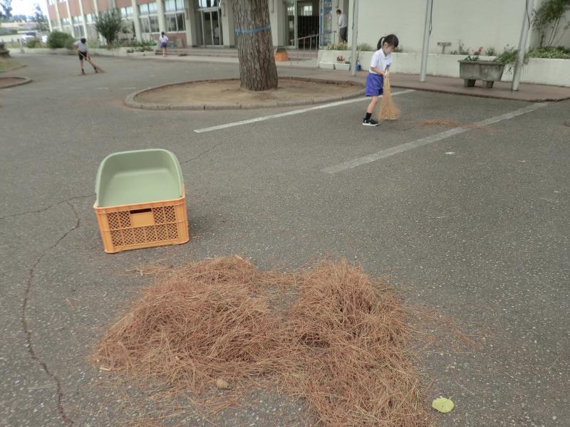 以前にも投稿しましたが、学校にはたくさんの松の木やさくら、いちょうの木があり、秋になると落ち葉でいっぱいになります。