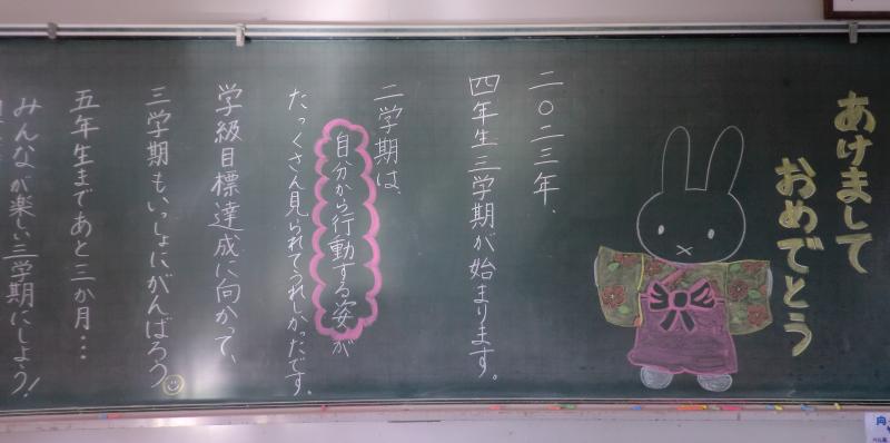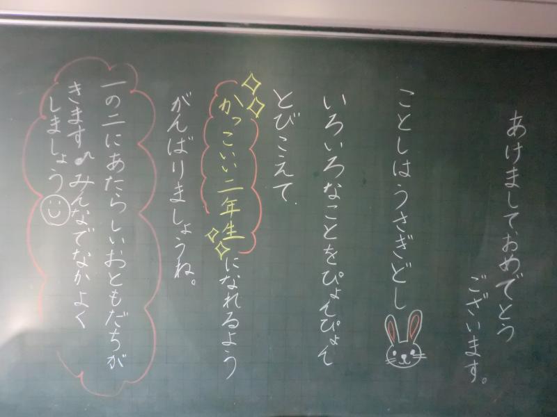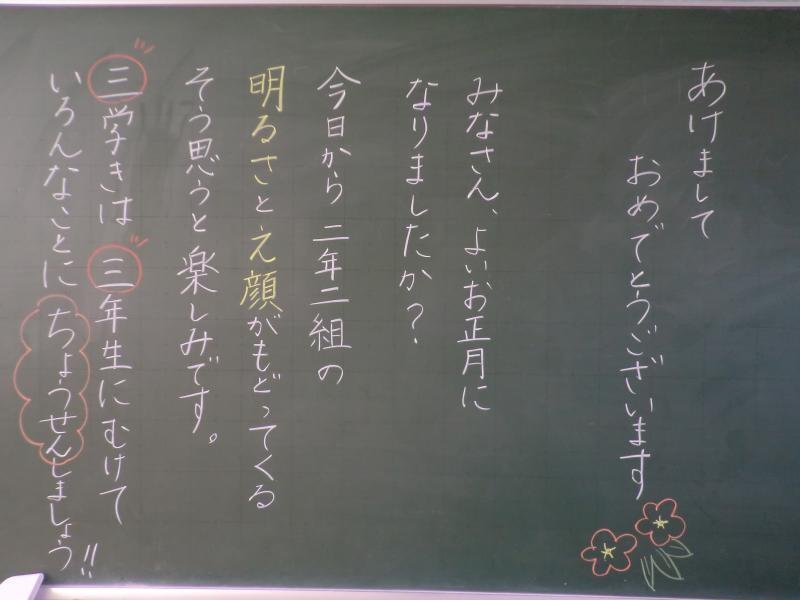 子どもたちを待つ教室も、新年のスタートということで先生方の新しい年に向かって希望あふれるメッセージが見られました。