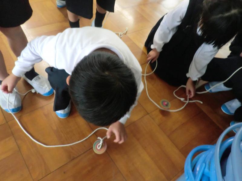 1年生が生活科で、昔からの遊びを楽しんでいます。