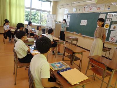 Englishルームでは、外国語の授業に取り組んでいました。ALTの発音をまねて元気よく英単語を練習したり、イントネーションの聞き取りに挑戦したりと、どの活動も意欲的に取り組んでいます。