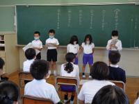 2年生が国語の授業で学習したことを生かして「音読発表会」を行いました。3年生を招待して、自分たちが選んだお話を披露しました。作品は、アーノルド・ローベルの書いたお話の中から選びました。「なくしたボタン」「アイスクリーム」「おはなし」「はるがきた」の4作品を3年生は集中して聞いていました。2年生は、グループ毎にセリフの分担や動作の工夫をし、練習の成果を見せてくれました。2年生にとっては、先日のMROのアナウンサーの読み聞かせもよい刺激になったかもしれませんね。音読発表が終わった後は、「かんそうタイム」。3年生が、たくさん手を挙げてくれました。2年生の音読も素晴らしく、3年生の聞く態度、感想を伝えようという気持ちも立派でした。