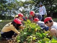 土を掘っていて大きな芋に出会えた子が「おーい。誰かここ手伝って!」と声を出すと「いいよ」と集まってくるお友達の姿もあちらこちらで見ることができました。