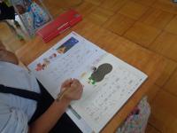 ここでは、同じように書写をしていましたが、硬筆に挑戦中です。お手本を見ながら一生懸命に書いています。