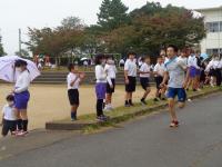 低学年・中学年・高学年別に実際のコースを歩いたり、ゆっくりジョギングしたりとそれぞれの学年でペースを考えて実施しました。