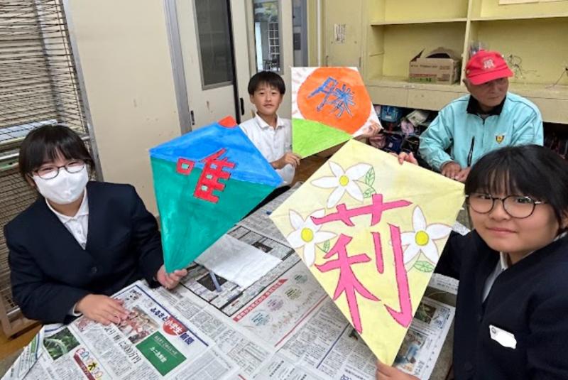 全員の凧がきていに揚がり、みんな大盛り上がりでした。凧の会の方からも、「全員の凧がとても上手にできていて、うまく上がり、どの凧を先頭凧にしてもいいくらい!!」と褒めていただきました。
