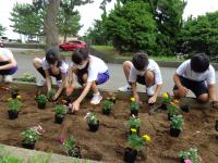 今まで寂しかった学校前の花壇が、とても明るくなりました。