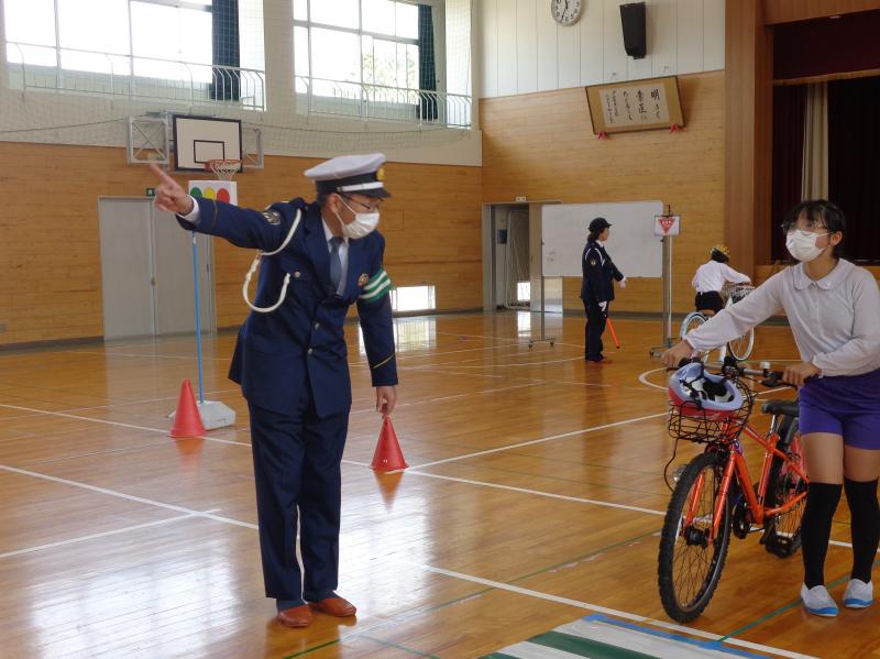 津幡警察署交通課の方々から、自転車の安全な乗り方について教えていただきました。ヘルメットをしっかりと着用することや一時停止をして前後左右の確認をすることなど、自分の身を守るために大切なことを確認することができました。