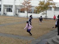 木曜日の昼。運動場で「向っ子駅伝」が開催されました。これは、11月3日に行われる「いしかわっ子駅伝」に出る選手の壮行会を兼ねています。今まで練習をしてきた選手達が、全校児童に練習の成果を見せると共に、本番に向けてのリハーサルを兼ねていました。リハーサルというからには、競い合うチームがいた方が本番さながらの力を出せます。より本番に近い形で実施するために、選手達を今まで指導してきた先生方を中心にしてチームを編成しての催しとなりました。