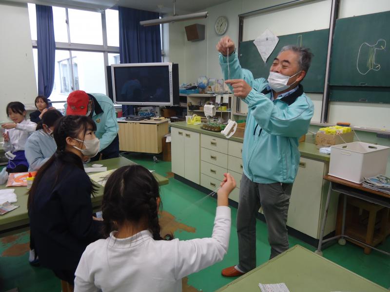 11月28日(火)に、凧作りの続きを行いました。前回同様、凧の会の方々に教えていただき、自分だけのオリジナルの凧を完成させました。そして、完成した凧を、体育館で試しに揚げてみました。