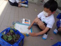 何をしているのかなと近づいてみると、あちらこちらから「教頭先生、見てください。」「先生、上手にかけたよ。」とたくさんの声がかかりました。どうやら、自分たちの育てているアサガオを観察して、スケッチしているようです。