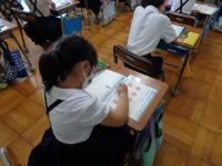 湿度が高く、じめじめとした空気の中でしたが、子どもたちは、雨にも負けず一生懸命授業に取り組んでいました。