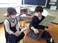 6年生は、英語の時間に、内灘町で見られる生き物について調べてきました。生き物の名前、食べ物、住んでいる所などを調べたあとは、英語での言い方を学習しました。今日は、調べたことを3年生に伝える時間でした。一人一台のchromebookを手にしています。英語で伝えるのですから、3年生にとっては、何を言っているのか分からないかもしれません。そこで、分かりやすく伝えるために、chromebookで写真やイラストを見せながら英語で調べたことを伝えるようにしたそうです。