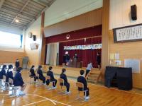 2限は全校児童参加の書き初め大会。みんな、2学期から冬休みにかけてがんばった練習の成果を発揮・・・・・・ ♪「春の海」をバックに、集中して一生懸命に取り組んでいました。