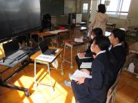 6年生は、英語の時間に、内灘町で見られる生き物について調べてきました。生き物の名前、食べ物、住んでいる所などを調べたあとは、英語での言い方を学習しました。今日は、調べたことを3年生に伝える時間でした。一人一台のchromebookを手にしています。英語で伝えるのですから、3年生にとっては、何を言っているのか分からないかもしれません。そこで、分かりやすく伝えるために、chromebookで写真やイラストを見せながら英語で調べたことを伝えるようにしたそうです。