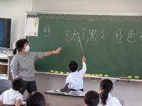 2年生の教室をのぞくと、新出漢字の学習をしていました。「太い」の感じの特徴をつかむために、似ている漢字を考えていました。「大きい」「犬」という発表が続きました。自分の考えをしっかりと話す子、友達の考えをしっかりと聞く子がたくさんいました。