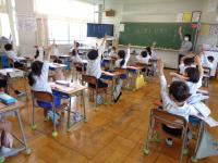 本校では、掃除が終わった後の10分間「スキルアップタイム」という時間があります。時間はわずか10分ですが、塵も積もれば山となる時間となっています。プリントの答え合わせや、国語・算数の力をつける問題、復習問題、読書などの時間に使っています。5年生の教室をのぞいてみると、週末の宿題で出されていた2年生の復習問題の答え合わせと解説を担任の先生が行っていました。5年生が2年生の復習?と思われるかもしれませんが、案外と忘れていることも多いようです。忘れていたことを繰り返し思い出すことで学力も定着しますね。