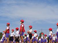 今日は、日差しが思いのほか強く、軽い運動でも汗が出てくる感じでした。全体練習の最中もこまめな水分補給を促したためか、水筒のお茶が空っぽになる子もいました。運動会当日はどんな天気になるのでしょうか?暑い一日になりそうでしたら、水分は多めに持たせてください。