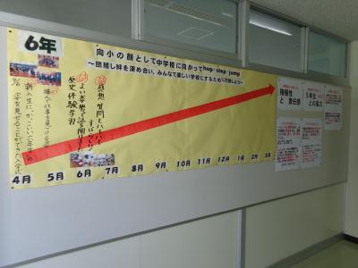 子どもたちの成長の足跡 投稿日時 : 2020/07/02 教職員 向粟崎小学校の廊下には、どの学年も大きな模造紙が掲示してあります。 模造紙の下には、「4月」「5月」・・・「3月」となにやら年表のような表示が。 実は、これは学年の「成長年表」です。 学年の発達段階に応じた学年目標や成長を促すキーワードが掲示してあったりします。成長を感じた行事や体験・学習などの写真と共に1年間の歩みを少しずつ積み重ねていくようになっています。 少しずつ自分たちの成長の足跡が残っていくので、見ていても楽しいですね。 Tweet