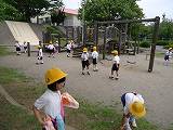 それで今日は、ゴミ拾いの後クラスみんなで「へいたいさんがころんだ」をして遊び、次に班ごとに決めた遊びで仲良く遊んでいました。めあてを守り、仲良く楽しく遊ぶことができました。