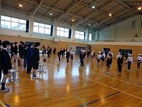 1時間目の体育館。6年生が、緊張した面持ちで卒業式の退場練習をしていました。早めのテンポであっという間に退場してしまう6年生。担任から、もっと堂々とゆっくりと退場するようにと何度も繰り返し指導が行われていました。