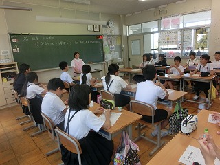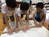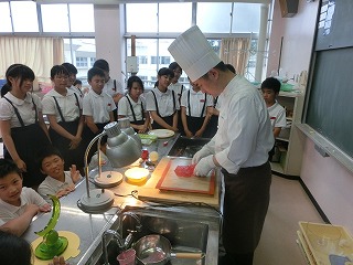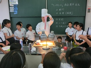 総合的な学習の時間に、職業について学習しています。何のために働くのかを考えることで、将来の夢や今の自分を考え直しています。本やパソコンで調べるだけでなく、その道のプロに来ていただいて直接話をきいたり技を見せていただいたりします。第1回のゲストは、保育士の前田侑紀先生(向陽台保育園)、第2回はパティシエの南谷晃平さん(リッチモント)に来ていただきました。園児の知らないところでの保育士の仕事や、忙しさに差がある働き方をしていることに驚いているようでした。
