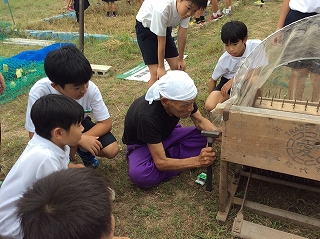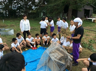 講師の川辺さんをお迎えし、稲の刈り方やだっこくの仕方について教えていただきました。