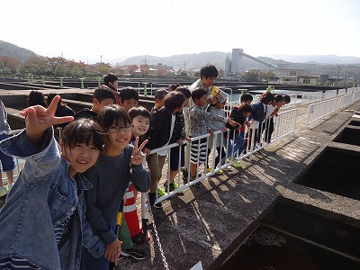 午前中は末浄水場へ行きました。普段何気なく使っている水が綺麗になる仕組みを映像や施設内を見学させてもらいました。汚れている水が段々綺麗になっていく行程を見て、子ども達はとても驚いている表情で施設の方の話もしっかりと聞くことが出来ました。