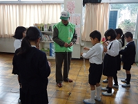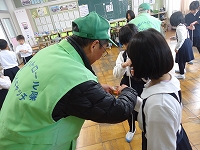 今日、地域の方々をお招きし、1年生が『昔あそびをたのしもう』を行いました。