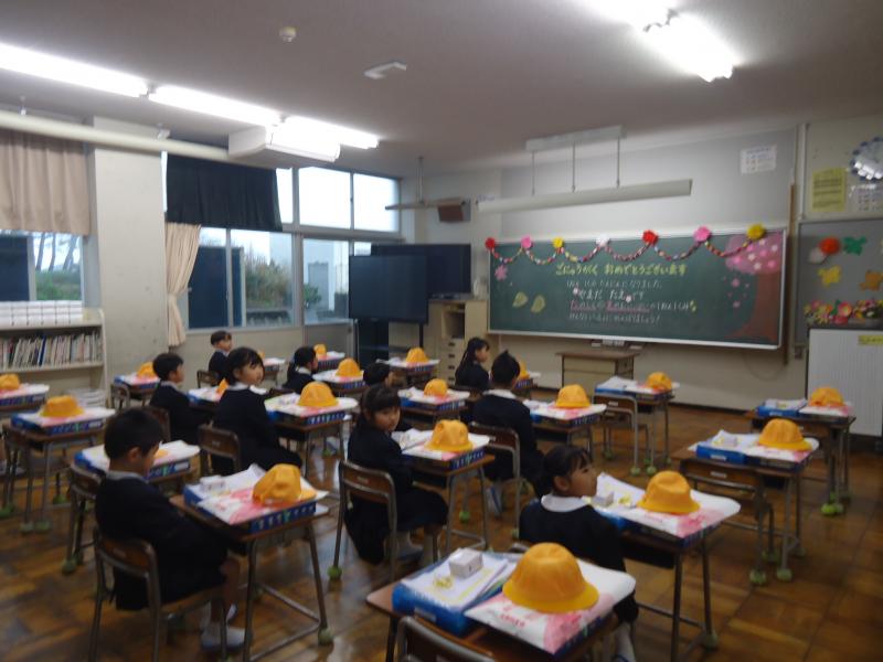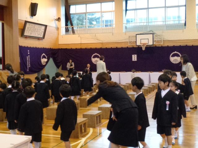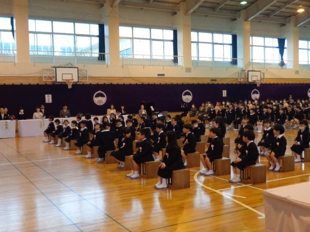 42名のかわいい新入生を、4年生から6年生とご来賓の皆様、教職員でお迎えしました。ピアノの演奏に合わせて元気に入場。