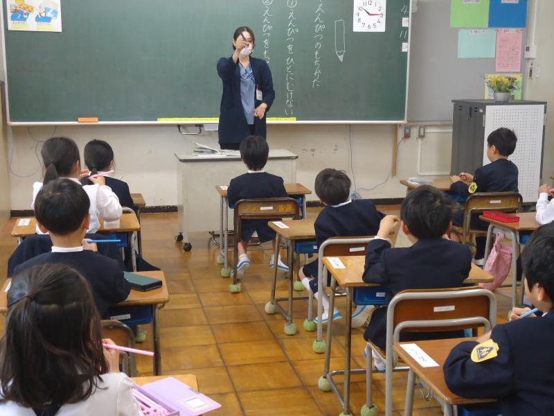 しらとり係長は、図工で絵の学習中の2年生にも大人気でした