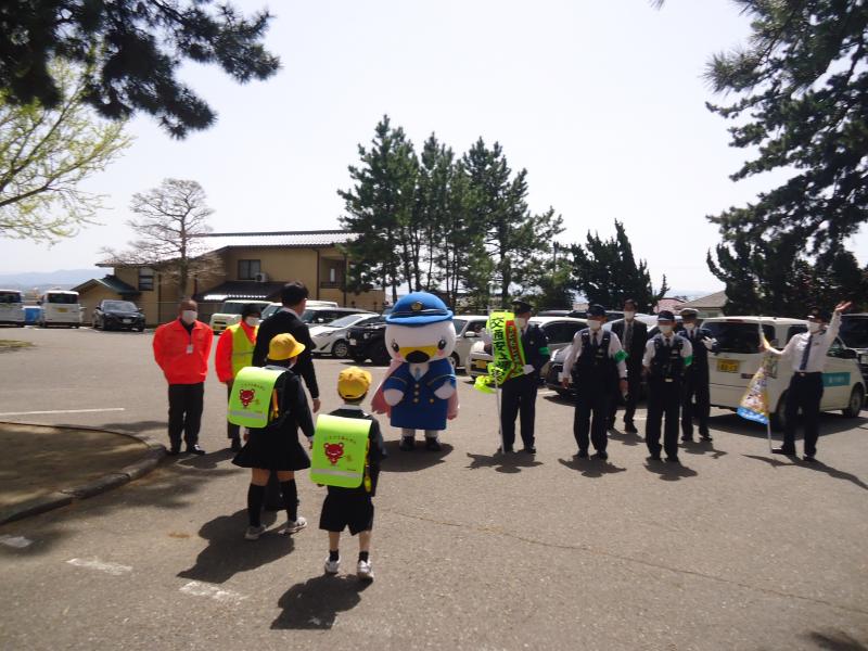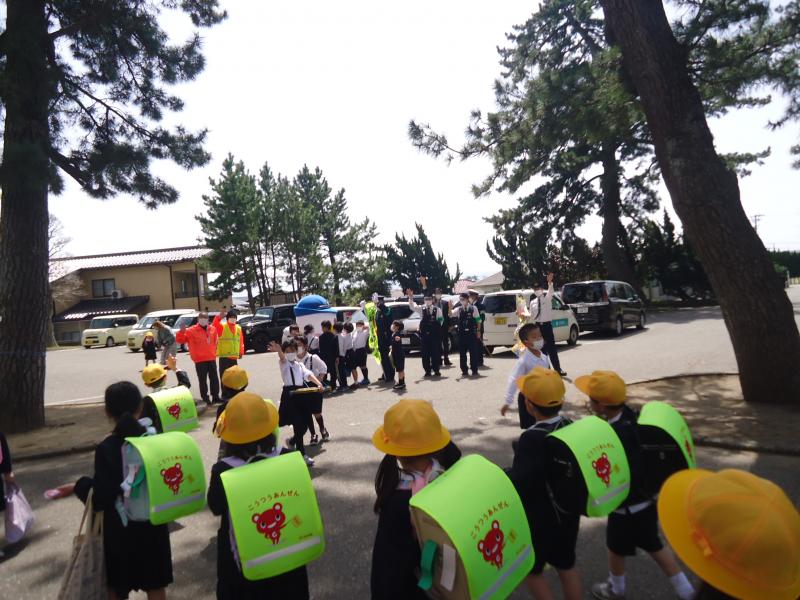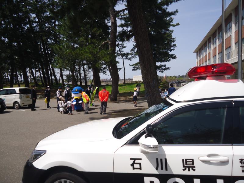 4月11日(火)1年生の下校時刻に合わせて、津幡警察署の方々、ボランティアの方々が見守りに来て下さいました。