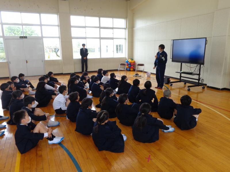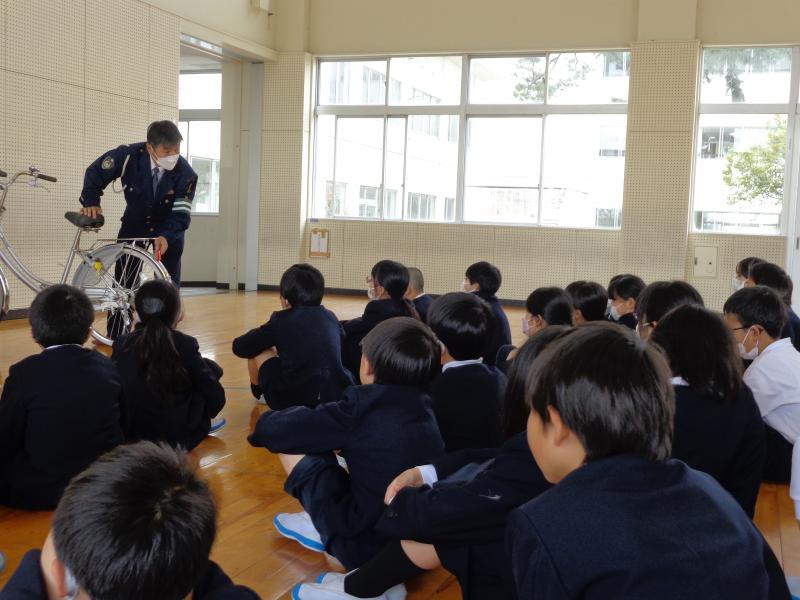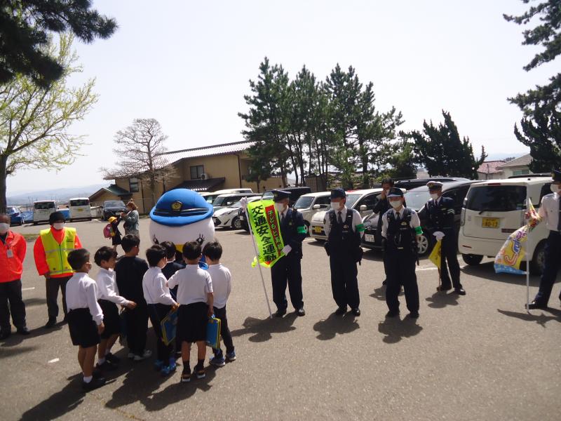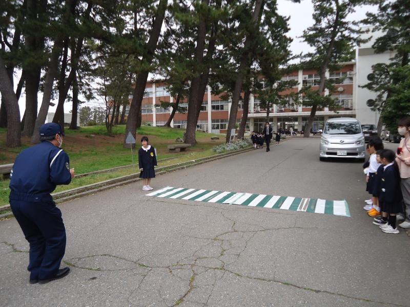 4月21日(金)1年生の交通安全教室がありました。津幡警察署のおまわりさんから、交通ルールに関する話や安全に登下校するための歩行の仕方について話を聞きました。