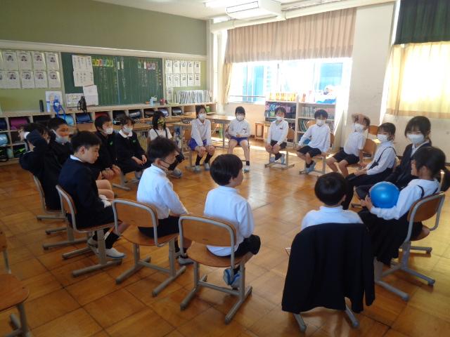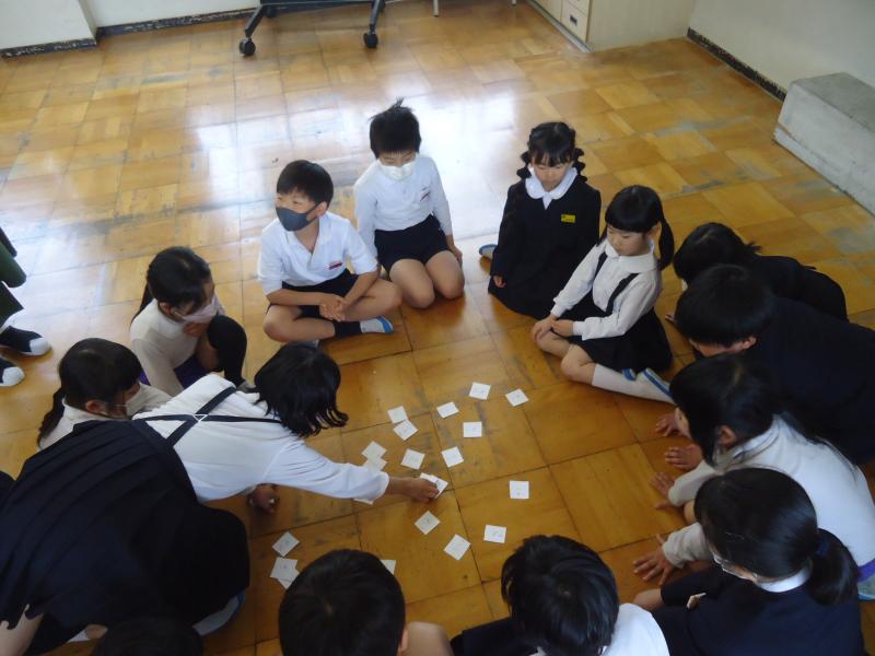 仲間の名前や互いのことを知るために、6年生が楽しいゲームを考えてくれました