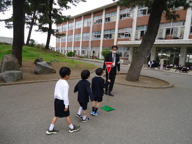 1年生は13日まで集団下校で、先生と危険な箇所などを確認しながら下校をしています。
