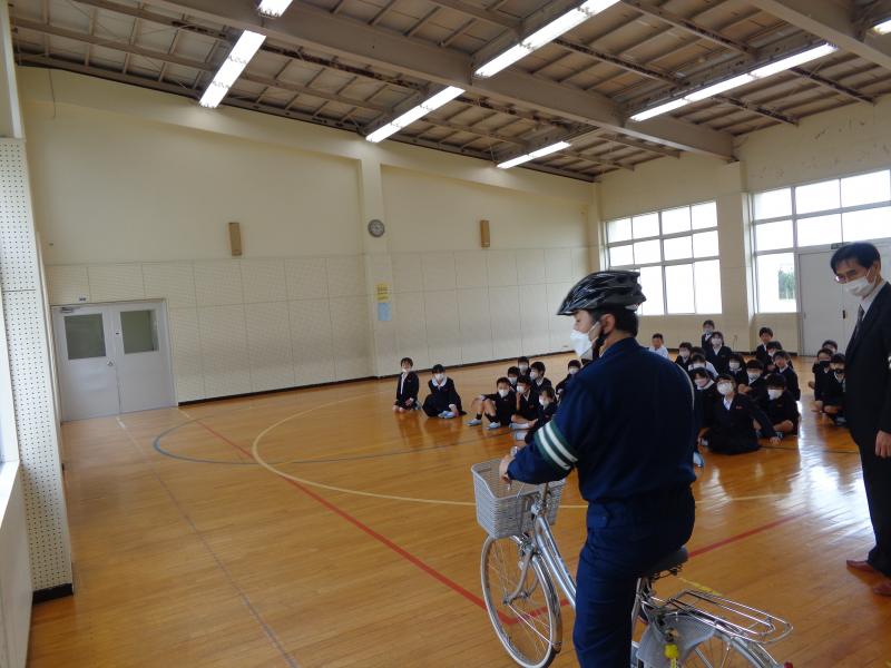 4月21日(金)4年生も自転車安全教室を行いました。津幡警察署のおまわりさんから、自転車の安全な乗り方のお話をしていただきました。
