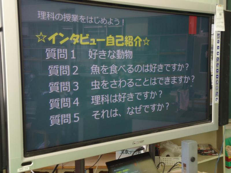 5年生が、☆インタビュー自己紹介☆で、自分の理科に関する興味関心についてみんなに伝えていました。
