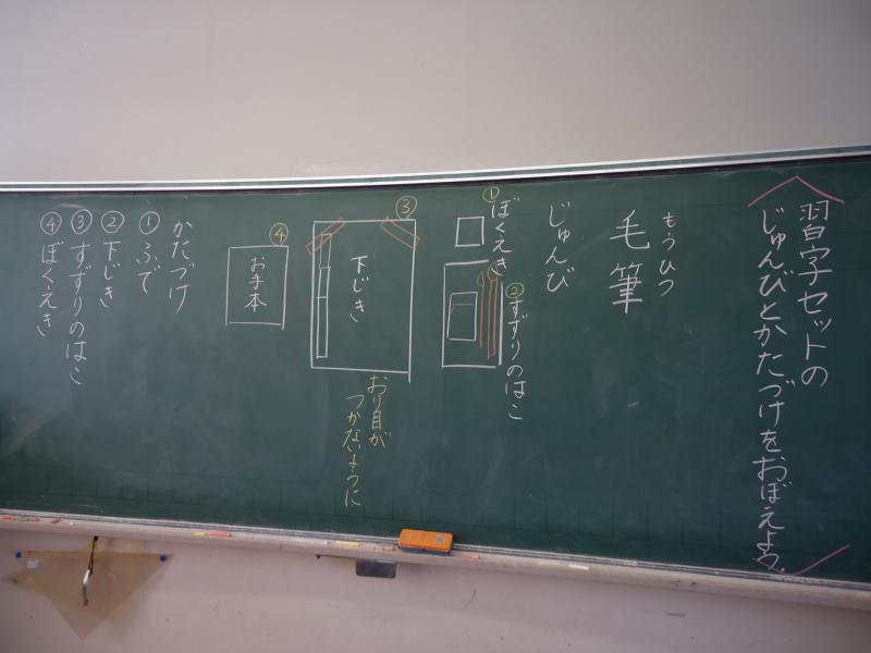 始めは、準備や片付けの仕方から学びます。初めて使うたくさんの道具・・・それぞれの名前から、出し方、並べ方・・・いちからのスタートです。