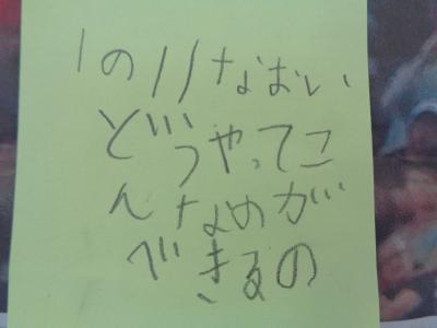 今日(9月10日)は、かわいい文字が書かれている付箋をたくさん発見しました。なんと1年生です。1年生なりに、新聞記事から感じたすなおな気持ちを書き表してありました。読んでいるだけで心がほっこりしてきます。