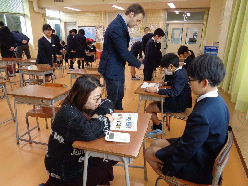 津幡町国際交流員のティモシーさんや、かほく市にお住まいのマンディさん・マットさん、そして内灘町にお住まいのアレックスさんが来てくださり、5年生と交流しました。