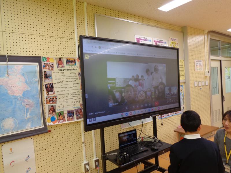 向粟崎小学校では数年前から、内灘町の国際友好交流都市である台湾竹北市の小学校とオンラインで交流を続けています。