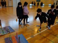 お客さんは1年1組のお友達です。ちょっと寒い体育館でしたが、遊んでいる内に体も心もぽかぽかに!