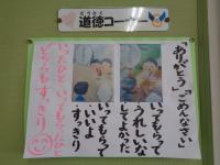 1組は友達について、2組はきまりについて話し合っていました。それぞれのクラスでは、道徳の資料を読み、お話に出てくる登場人物の気持ちを考えて、発表していました。友達について考える授業では、せっかくもらったおいしいさつまいもをうさぎさんに分けてあげる場面で、くまさんの気持ちを発表したくて、たくさんの子が手を挙げていました。きまりについて考える授業では、授業の最後に、学校のきまりについてどんなきまりがあるかを確かめ合っていました。どちらのクラスも、たくさんの子どもたちが手をあげて元気いっぱいに発表していました。また、話を聞く子も、相手の方を向きしっかりと話を聞けていました。2か月の成長を感じました。