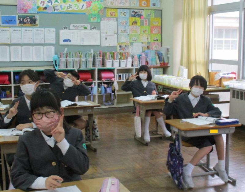 | 給食は、とてもボリューム感のあるおいしいピザトーストを喜んで食べていました。そして、午後の教室には暖かな日差しが届いています。元気かなあ?と5限目、校内を回ってみました。 | |