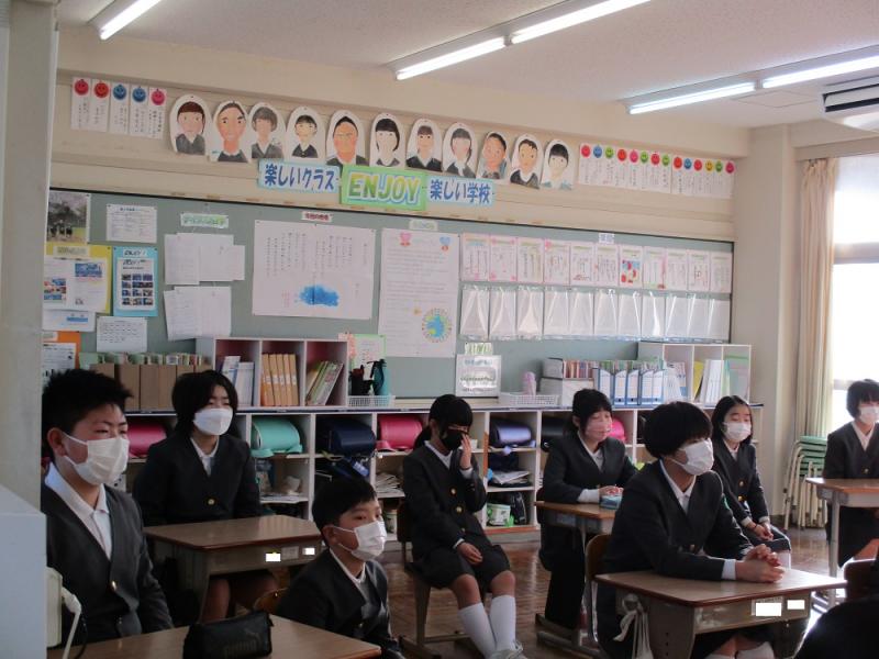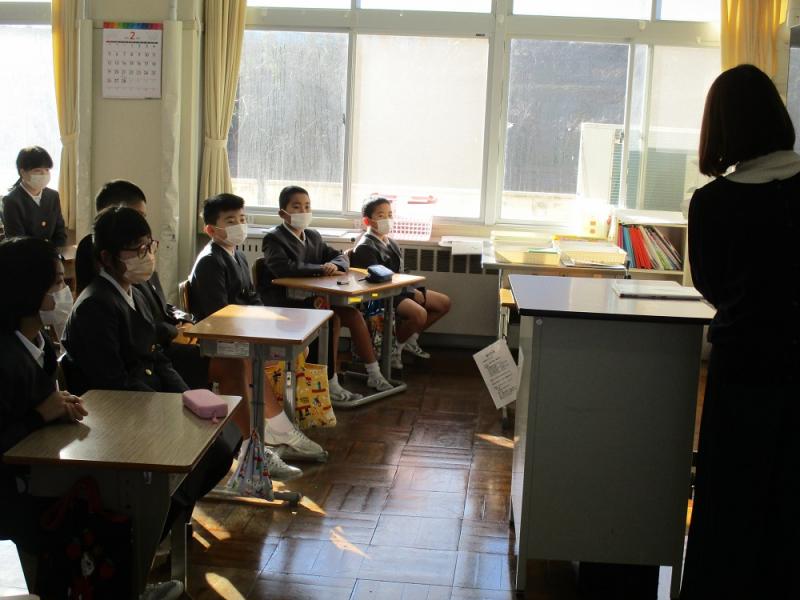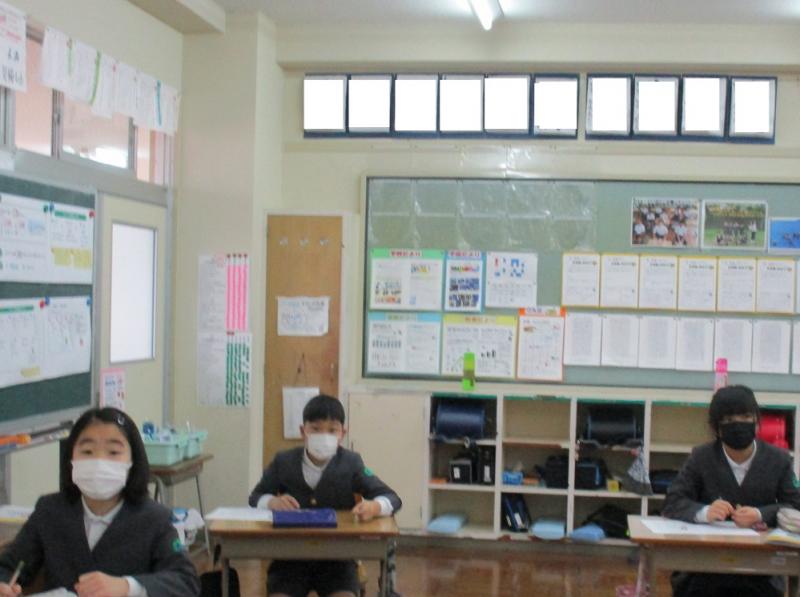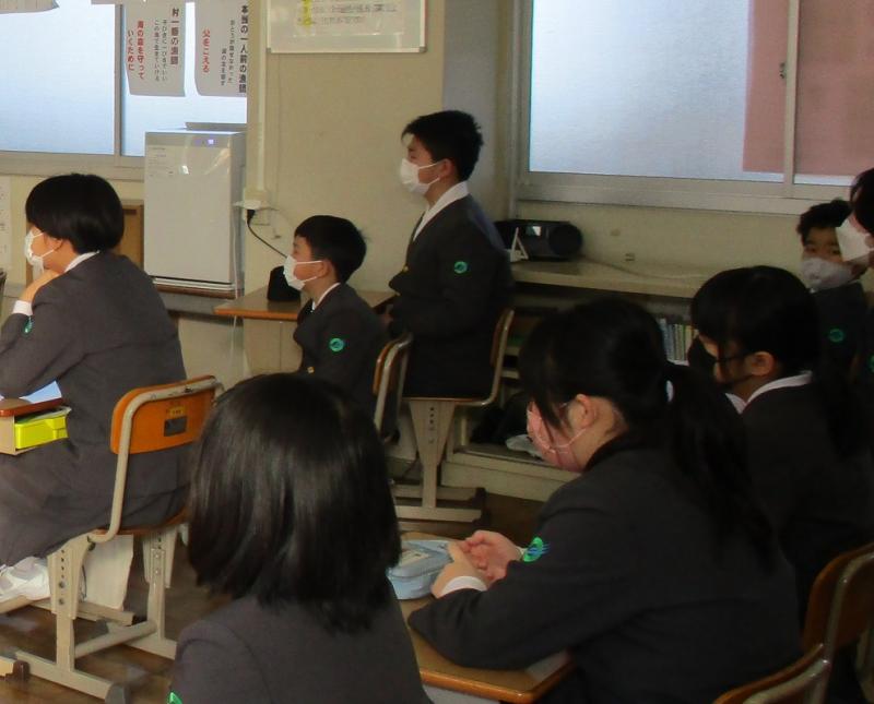 | 本日は、朝の会が始まる前の様子です。6年生を送る会の準備や出し物のお礼の気持ちを伝えようと各教室に入ってみました。 | |